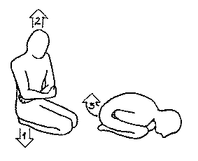 | 1 - Sitting on your heels, press your sitz bones downward and allow the