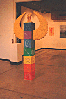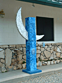 Totems are custom made with the symbols and words chosen in a collaborative process between the client and the artist. If you are interested in a custom totem for your home or business, please contact me.